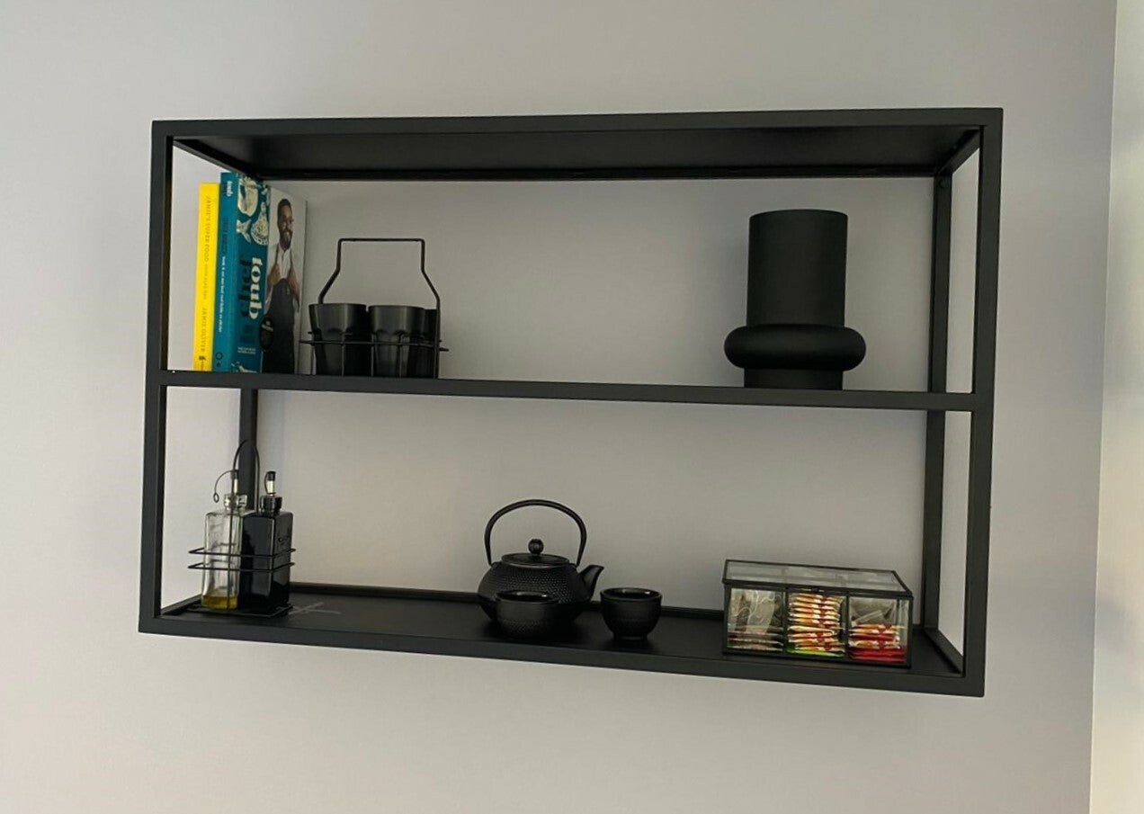Dankzij dit zwarte, stalen wandrek van MP Glas & Design krijgt jouw woon- of werkruimte een modern en indistrueel karakter. Het hangrek heeft drie legplankjes om je spullen op te plaatsen. Leuk voor bijvoorbeeld boeken of decoraties, maar ook handig voor in de keuken voor kopjes of voorraadpotten. Het rek is met de hand gemaakt en daarom van zeer goede kwaliteit. Ook is het wandrek afgewerkt met poedercoating finish en wordt geleverd met schroeven om het op te hangen.